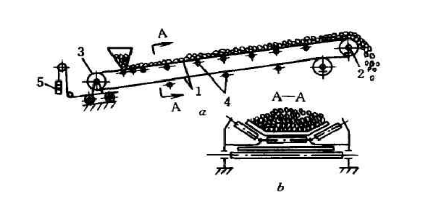 После того, как лента протекает сквозь ролики на обоих концах, два конца соединены вместе с ленточным зажимом или методом вулканизации, чтобы сделать его структурой с закрытой петлей. Лента переносится верхним и нижним роликами, а лента затягивается натягивающим устройством, которое имеет определенное натяжение. Когда вождение барабана приводится в движение двигателем и вращается с помощью трения между вождением барабана и лентой, ремень работает непрерывно, так что нагрузка, загруженная на ленту, выгружается из разгрузчивого барабана 2.
